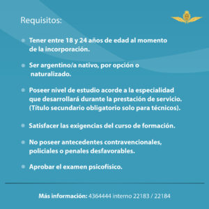 Asimismo, se informa que la Fuerza Aérea Argentina no requiere la utilización de servicios de gestoría o de terceros para realizar los trámites de incorporación. Los mismos son personales y la documentación solicitada debe ser presentada en el Puesto de Guardia de Ingreso a la II Brigada Aérea.