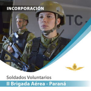 La II Brigada Aérea informa que se encuentra abierta la inscripción para jóvenes que quieran desempeñarse como Soldados Voluntarios y formar parte de la Fuerza Aérea Argentina.