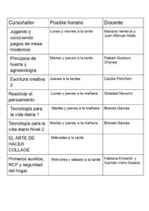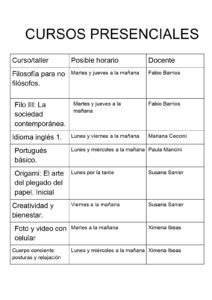 Durante el proceso de inscripción puede conocer en detalle el listado completo de cursos y talleres correspondientes al ciclo 2026. La oferta incluye 16 propuestas presenciales vinculadas a tecnología, arte, idiomas y distintas áreas de las humanidades, con el objetivo de abarcar diversos intereses.
