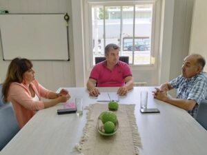 El Secretario de Servicios Públicos, Martín Millán, junto al presidente de la Agencia de Protección Ambiental Bahía San Antonio, Oscar Echeverría, mantuvieron una reunión con la responsable de Relaciones Institucionales de ALPAT, Luciana Di Clérico, con el fin de rehabilitar el acceso a la zona contigua a la Empresa denominada “Canal del Indio”.