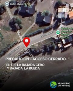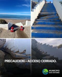 Se informa a la comunidad que el acceso a las playas, ubicado entre la bajada “Cero” y la bajada “La Rueda”, se encuentra momentáneamente inhabilitado debido al desmoronamiento de algunos peldaños de la escalera de acceso.