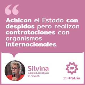 García Larraburu, destacó: “El Poder Ejecutivo Nacional repite como slogan que el Estado Argentino es la principal causa del empobrecimiento de sus habitantes. Que tiene un tamaño elefantiásico. En contracara, contratar funcionarios a través de organismos internacionales parece un mecanismo que no permite transparentar la planta en funciones”.