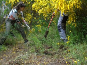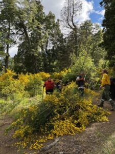 Por ello, entre el Parque Nacional y la de Asociación Circuito Verde, se realizaron dos jornadas este miércoles 4 y jueves 5 de diciembre, donde se intervino en un foco de invasión, despejando una superficie aproximada de 2500 m2 en el área de uso diurno de Arroyo Chilco en Mascardi, con un volumen estimado de 1483 metros cúbicos de retamas extraídas.