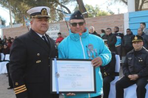 Durante el acto realizó, se realizó la entrega de un reconocimiento por parte del Ministerio de Seguridad al Veterano de Guerra, Ex Cabo Primero Víctor José Ryndycz, que lo acredita como amigo de la Prefectura Naval Argentina. Asimismo, el Presidente del Concejo Deliberante Daniel López, también hizo entrega de un presente a Ryndycz por su estrecha relación con la fuerza marítima.
