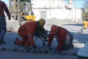 Finalizado el tramo donde hoy se ejecuta la pavimentación, continuarán con el adoquinado hasta llegar a la altura de Sgto Cabral y así completar las calles de las manzanas mencionadas.