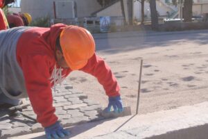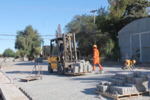 Finalizado el tramo donde hoy se ejecuta la pavimentación, continuarán con el adoquinado hasta llegar a la altura de Sgto Cabral y así completar las calles de las manzanas mencionadas.