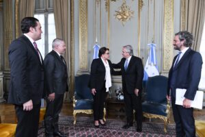 Participaron también del encuentro el ministro de Relaciones Exteriores, Comercio Internacional y Culto, Santiago Cafiero; y por Honduras el secretario de Relaciones Exteriores y Cooperación Internacional, Eduardo Enrique Reina García; y el secretario de la Presidencia Héctor Manuel Zelaya Castro.