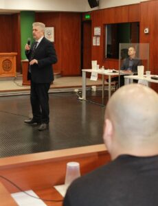 El Fiscal Jefe Hernán Trejo fue el primero en alegar, realizando una minuciosa reconstrucción de los hechos relatados el primer día, pero relacionándolos ahora con todas las pruebas que cada uno de los testigos ingresó y en ese marco explicó cada una de las contradicciones marcadas por los defensores