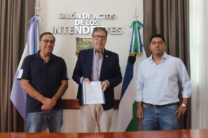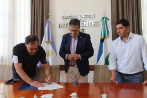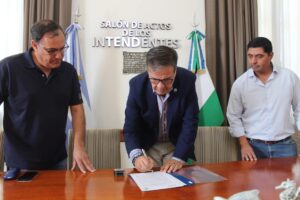 En la mañana de este viernes en el Salón de Actos de la Municipalidad, el Intendente Adrián Casadei, y el Gerente General de Aguas Rionegrinas Javier Iud, firmaron el convenio que da el alta del servicio de agua potable a la extensión del barrio Esperanza de San Antonio Oeste, con el acompañamiento en las gestiones del Legislador Luis Noale.
