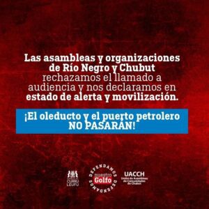 Después de la modificación inconstitucional de la ley 3308 que protegía el Golfo San Matías y a la Península Valdés de la contaminación por hidrocarburos, el gobierno convocó a una audiencia para el 17 de agosto para dar inicio a la construcción del oleoducto y el puerto petrolero.