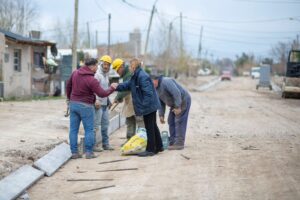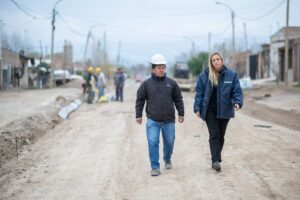 A la fecha, se continúa trabajando en el cuadrante de las calles Rio Negro, Hungría, Del Libertador y Jujuy, en el movimiento de suelo, la construcción de badenes, triángulo de transición y enripiado de calles. Además, se lleva ejecutado el cordón cuneta de 36 cuadras en ambas márgenes y, en el mismo sector, se realizan tareas finales de la obra de red de cloacas que beneficiará a 419 familias.