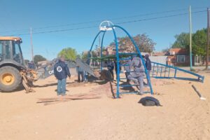 Se solicita a los vecinos y vecinas no utilizar los espacios antes mencionados, por razones de seguridad, donde personal municipal está trabajando con máquinas viales y camiones, en pos de la construcción de un espacio que fomente el encuentro, el esparcimiento y la integración.