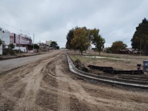 Con un avance del 20% de obra recientemente iniciada, continúa la confección de cordón cuneta en la calle Currú Leuvú de Las Grutas bajo la supervisión de la Subsecretaría de Planificación y Obras Públicas.