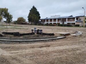 Con un avance del 20% de obra recientemente iniciada, continúa la confección de cordón cuneta en la calle Currú Leuvú de Las Grutas bajo la supervisión de la Subsecretaría de Planificación y Obras Públicas.
