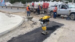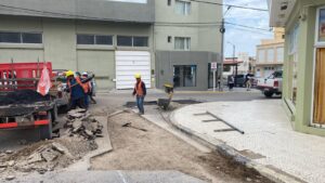 La Subsecretaría de Obras Públicas del Municipio San Antonio continúa con las tareas de bacheo en el Balneario Las Grutas. En esta ocasión, las obras prosiguen entre las intersecciones de la calle Viedma e Ingeniero Huergo.