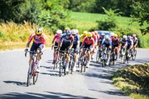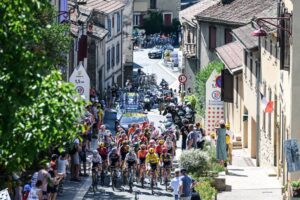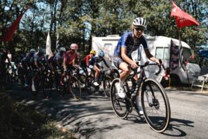 Kaja Rysz (Lifeplus Wahoo), Gabrielle Pilote-Fortin (Cofidis) y Evita Muzic (FDJ-Suez), 8ª en la general el año pasado, se retiran. La francesa sufre de dolencias gástricas. En el frente, el tira y afloja continúa entre el escapado y el pelotón, donde las formaciones Ceratizit-WNT y Canyon//Sram Racing están más involucradas en la persecución. La Côte de Najac (3ª categoría, 2,1 km al 7,4%) es la primera de las tres subidas enumeradas. El escapado se acerca a él con menos de 10″ por delante. Y el pelotón rápidamente hace el cruce.