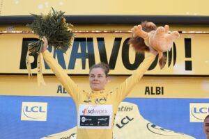 de Ricarda Bauernfeind nunca serán vistas de nuevo. El alemán de 23 años no se rindió en la final. Y ganó 22″ por delante de Reusser y Liane Lippert (Movistar), que sembraron el pelotón en el descenso a Albi. Lotte Kopecky (SD Worx) domina el sprint del pelotón, llegó a 32″, para tomar el 4º lugar y mantener su maillot amarillo.