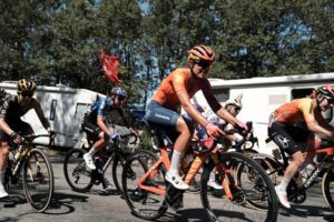Ricarda Bauernfeind (Canyon//Sram Racing) aprovechó un tiempo muerto para aislarse a 36 km de la meta. Ganó el Castelfadèze Bonus Point (6″ bonus) por delante de Claire Steels (4″), que intentó en vano acompañar a la escaladora alemana, y Ashleigh Moolman-Pasio (2″). La persecución es desorganizada, se producen muchos ataques fallidos. La brecha sube a 1’30” antes del inicio de Marlen Reusser (SD Worx). El dos veces campeón de Europa de contrarreloj lidera el grupo para cerrar la brecha. Y funciona. Está a solo 40 “a 10 km de la meta.