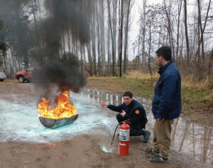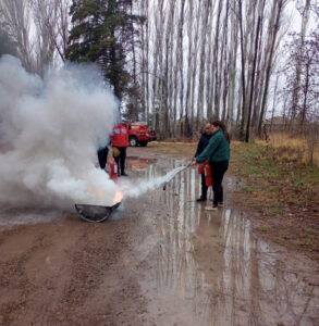 El Cuerpo de Bomberos de Viedma de la Policía de Río Negro dictó una capacitación enfocada en los mecanismos de extinción de incendios, el correcto uso y manejo de extintores, dirigida al personal del Instituto de Desarrollo del Valle Inferior (IDEVI).
