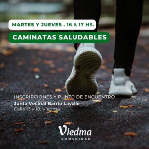 La Municipalidad de Viedma invita a participar de las “Caminatas Saludables” que se llevarán adelante desde mañana martes 3 de septiembre.