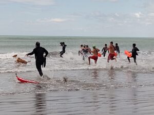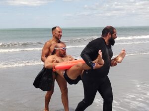 En la jornada de hoy se está llevando a cabo en las playas de Las Grutas la capacitación de salvamento en el mar dictado por el experimentado instructor internacional David Peresenda, jefe del cuerpo de guardavidas de Puerto Madryn, brindando sus conocimientos en más de 10 países incluyendo Europa y Estados Unidos.