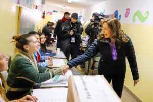 Luego de emitir su voto en la Escuela N° 321 de San Carlos de Bariloche, la Gobernadora Arabela Carreras dialogó con la prensa y expresó su alegría “porque en el año en que se cumplen los 40 años de la recuperación de la democracia, hoy estamos nuevamente en una jornada que nos permite expresarnos, tomar decisiones, y hacer una evaluación de cómo venimos y hacia dónde queremos ir como sociedad”.