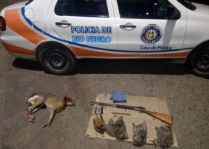 En el marco de un operativo de control vehicular en Casa de Piedra, personal de Seguridad Vial de la Policía de Río Negro encontró animales faenados y un arma de fuego en el interior de una camioneta.