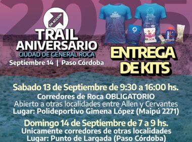 Con más de 1100 inscriptos, el próximo domingo 14 de septiembre se llevará adelante el Trail Aniversario de Roca en las bardas del Área Natural Protegida Paso Córdoba. En este contexto, el Municipio refuerza información importante y recomendaciones para corredores/as. *Retiro De Kits: Los y las ATLETAS DE ROCA deberán […]