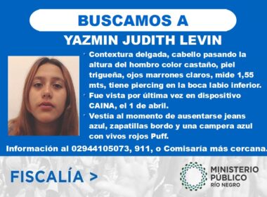 Bariloche-La Unidad Fiscal Temática N°1 se encuentra llevando a cabo diversas diligencias para dar con el paradero de la menor Yazmin Judith Levin, de 15 años de edad, quien fue vista por última vez el día 1 de abril, a las 16:30, momento en que se ausentó del dispositivo CAINA […]