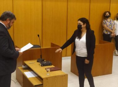 Hoy juró como Secretaria de primera instancia de la Unidad Procesal N°11 del Fuero de Familia de Viedma Florencia Camardón. La jueza del STJ, Liliana Piccinini, fue la encargada de tomar el juramento.