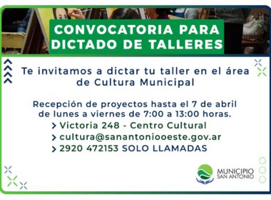 La Dirección de Cultura del Municipio San Antonio convoca a talleristas de los tres centros urbanos con el objetivo de conformar los Talleres que serán coordinados a través del área municipal.