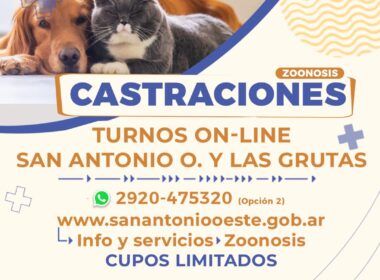 Zoonosis Municipal, dependiente de la Secretaría de Gobierno, informa que durante la Temporada de Verano las jornadas de castraciones en las sedes de San Antonio Oeste y Las Grutas continuarán con su normal funcionamiento.