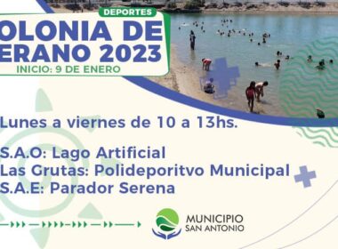 Coordinado por la Dirección de Deportes, el día lunes 09 de enero comenzará las Colonias de Verano 2023 en San Antonio Oeste, Las Grutas y San Antonio Este.