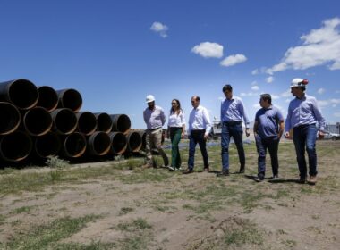 El gobernador Omar Gutiérrez y el ministro de Energía y Recursos Naturales, Alejandro Monteiro recorrieron ayer junto con directivos de la empresa Oldelval la obra de construcción de los primeros 20 kilómetros del oleoducto en Puerto Rosales, provincia de Buenos Aires.