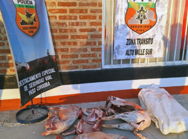 Durante un operativo de control vehicular en Paso Córdoba, personal de la Policía de Río Negro llevó adelante el decomiso de carne que era transportada de forma irregular en una camioneta.