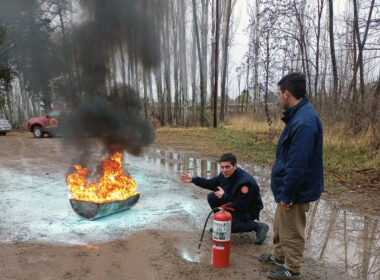 El Cuerpo de Bomberos de Viedma de la Policía de Río Negro dictó una capacitación enfocada en los mecanismos de extinción de incendios, el correcto uso y manejo de extintores, dirigida al personal del Instituto de Desarrollo del Valle Inferior (IDEVI).