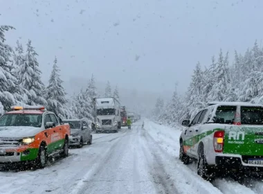 Protección Civil realiza tareas de asistencia por la nevada en Zona Andina