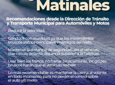General Roca. – Desde la Dirección de Tránsito y Transporte del Municipio de Roca se emiten las siguientes recomendaciones, para conducir bajo situaciones de heladas matinales o muy bajas temperaturas registradas en la ciudad: