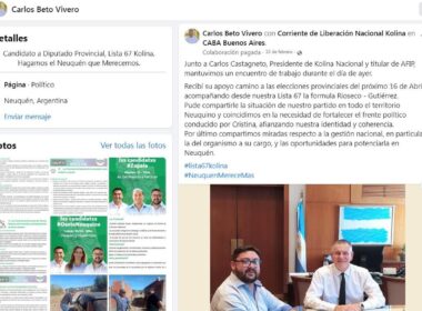 El cruce la documentación obrante en los sistemas administrativos de acceso público de la Universidad Nacional del Comahue con las publicaciones de Facebook del secretario de Bienestar Universitario y primer candidato a legislador por la colectora de Kolina del Frente de Todos neuquino, Carlos Beto Vivero, da cuenta del uso […]