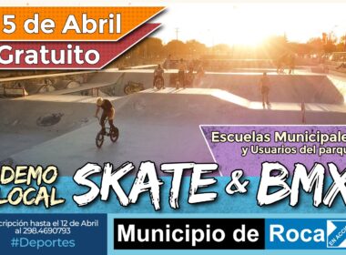 El Municipio de Roca invita a los y las amantes de las disciplinas a participar de una “Demo local” para Bikers y Skaters a realizarse el sábado 15 de abril, en el Skate Park de Roca.
