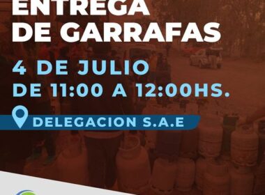 Mañana jueves 4 de julio a partir de las 11 hs se realiza la entrega de garrafas