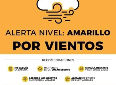 Pronóstico de alerta amarilla por vientos para nuestra región.
