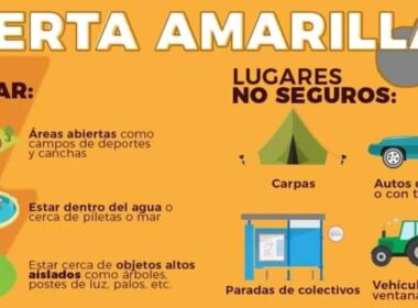 Pronóstico de tormentas (alerta amarilla) en nuestra zona para la tarde de hoy 21 de junio, que prevee que el área será afectada por lluvias fuertes, esperando valores de precipitación acumulada entre 15 y 30 mm.
