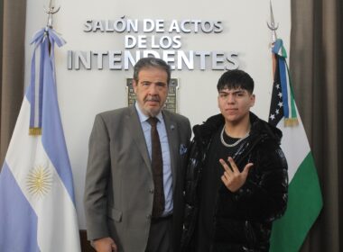 El Intendente, Adrián Casadei, recibió al artista local Gaby Records a quien felicitó por su reciente contrato con una de las tres empresas discográficas más importantes del mundo, lo que hace que hoy el sanantoniense continúe formando su carrera en la industria consagrada de la música.