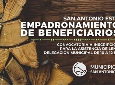 La Delegación Municipal de San Antonio Este, en conjunto con la Secretaría de Desarrollo Social, convocan a aquellas familias que requieran la asistencia de leña para anotarse en el padrón y de esta manera, recibir el beneficio entre los meses de mayo a agosto inclusive.