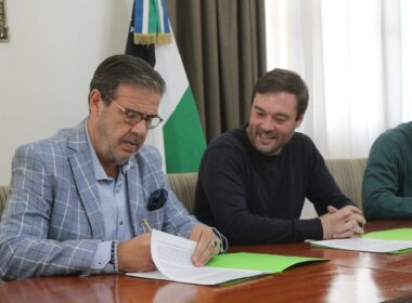 El Intendente Municipal Adrián Casadei junto al Interventor del IPPV, Mariano Lavin, firmaron en horas del mediodía un convenio de colaboración recíproca para el mejoramiento del desempeño territorial, en el marco del programa “IPPV en tu barrio”.