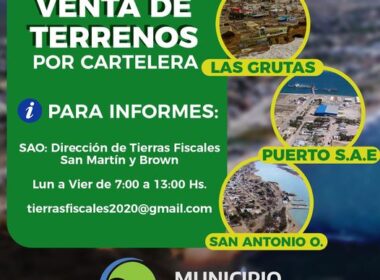 La Dirección de Tierras Fiscales dependiente de la Secretaría de Planificación y Desarrollo Sustentable del Municipio San Antonio informa que se encuentran exhibidas en la cartelera del Salón de Atención al Publico del Municipio (Brown esquina San Martin – SAO) la información sobre la venta de terrenos en los tres […]