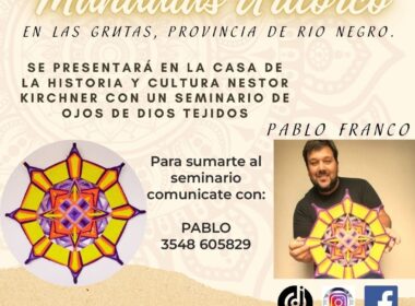 La Dirección de Cultura, a cargo de Marcela Lal, invita al Seminario de ojos de dios tejidos a cargo de Pablo Franco, referente de “Mandalas Uritorco” de Capilla del Monte.