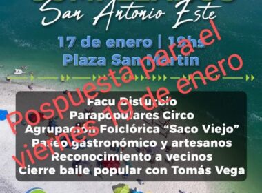 El Municipio San Antonio informa que debido a la perdida física que sufrimos en el día de la fecha, se posponen los festejos organizados por el cumpleaños del Puerto San Antonio Este para el próximo viernes 19 de enero.