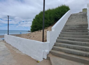 La Subsecretaría de Obras Públicas avanza la puesta en valor de las bajadas en la localidad de Las Grutas, donde los agentes intervinieron en la Primera y Segunda Bajada, además de que se encuentra en ejecución la escalera en la bajada de “Los Pescadores”, que fue afectada por mareas extraordinarias.